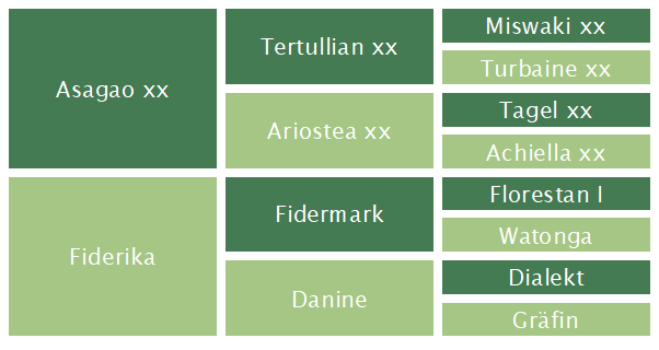 Areion stammt aus dem ersten Jahrgang unseres Stationshengstes Asagao xx. Durch seinen erfolgreichen Mutterstamm ist er einer der genetisch am besten abgesicherten Halbblüter, die es derzeit in der Warmblutzucht gibt. Seine direkte Mutter Staatsprämienstute Federika von Fidermark NRW brachte den gekörten, GP-erfolgreichen und züchterisch wertvollen NRW-Landbeschäler First Selection hervor. Sie brachte weitere sporterfolgreiche Dressurpferde und entspringt einem der besten westfälischen Stutenstämme (Stamm 483).