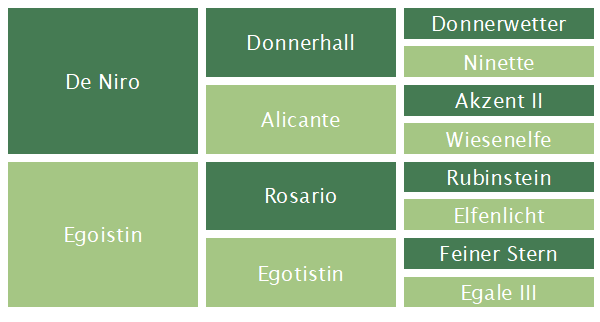 Don Deluxe´s Vater, De Niro, zählt zu den besten Dressur-Vererbern unserer Zeit und gilt als absoluter Ausnahmehengst. Der Muttervater Rosario, Sohn des legendären Rubinstein, war 2001 Prämienhengst in Vechta. Er gewann seine Leistungsprüfung, wurde zwei Jahre in Folge zum Oldenburger Champion und in Warendorf zum Vizebundeschampion ernannt. Außerdem qualifizierte er sich für die WCYH in Verden und wurde 2003 zum Vizeweltmeister ernannt. Später erzielte er hervorragende Ergebnisse in S-Dressuren. In der dritten Generation finden wir Feiner Stern, einen Siegerhengst mit außergewöhnlicher Trabmechanik. Die Mutterlinie umfasst die berühmte Egitta-Linie, welche zahlreiche gekörte Hengste und hochgeschätzte Stuten sowie internationale Sportpferde umfasst.